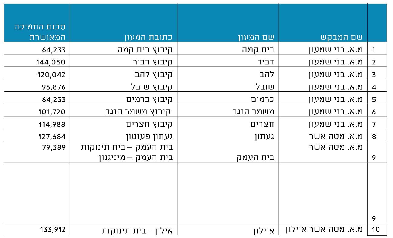 לשנת הלימודים תשע"ג אושרה תמיכה ל 189- סטודנטים בסכום כולל של 945,000 ₪.